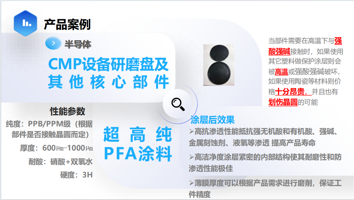 PPB级超高纯防腐粉料,具有超高纯度、优秀防腐性、高厚度及致密性、高硬度及耐磨性等4大技术特征,广泛应用于半导体行业的专用涂层材料
